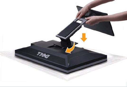 | 1 | Working from the rear of the monitor, attach Soundbar by aligning the two slots with the two tabs along the bottom rear of the monitor. |