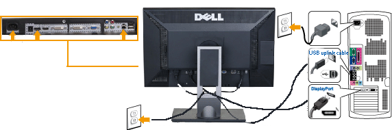 NOTE: USB uplink cable connection enables USB ports and card reader on the monitor to work. |
