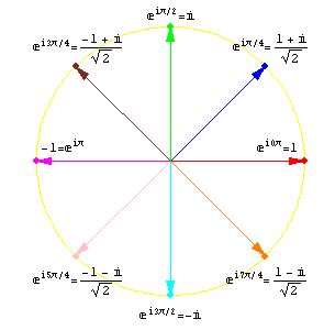 És a $8$ méretű $X$-ben lévő elemeket sem Dumbledore varázsolta oda, hiszen ezeket az értékek ismertek. (Ha hamarabb nem, Diszkrét matematika órákról biztosan.) Ezek bizony az egységgyökök. Olyan értékek, amik egy egységkörön - 1 sugarú kör - helyezkednek el.