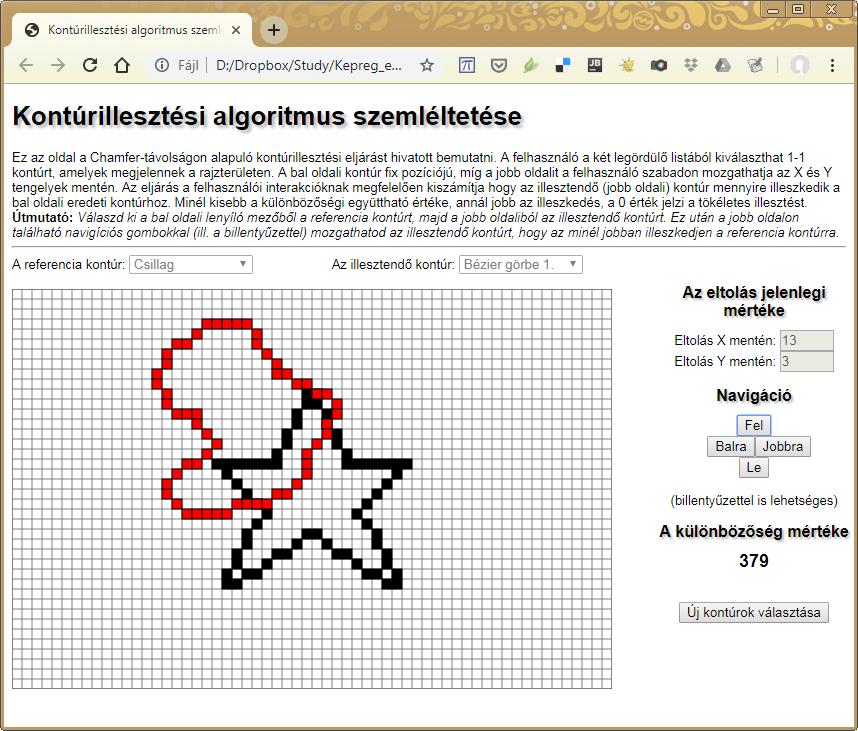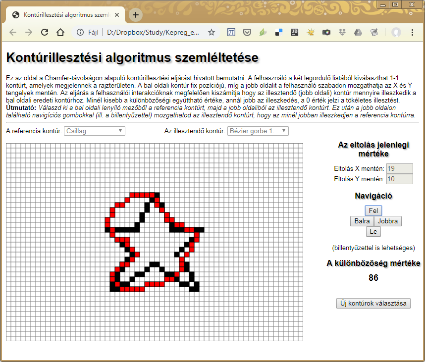 A hierarchikus Chamfer illesztés (Hierarchical Chamfer Matching -- HCM) egy hatékony megközelítés a kontúrillesztésre, amennyiben a kontúrpontokat egy diszkrét rácson mintavételezni tudjuk. Ezen a rácson aztán hatékonyan meghatározhatjuk az úgynevezett távolságtérképet, amely minden egyes képponthoz megadja a kontúrtól való távolságát. Ez lehet Euklidészi távolság, vagy egész számértékekkel közelített becslés. Megjegyezzük, hogy azt nem tudjuk meg, melyik ponthoz vagyunk a legközelebb, vagyis párosítást nem végez, nincs is rá szükség.