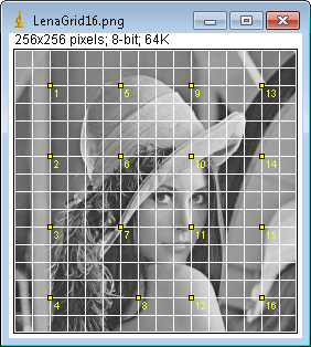 - A deformáció jobb szemléltetéséhez rajzoljunk rácsot a képre! Ezt megtehetjük a Draw_Grid plugin használatával. A Lena képre ez nem szükséges, mert eleve tartalmazza.
