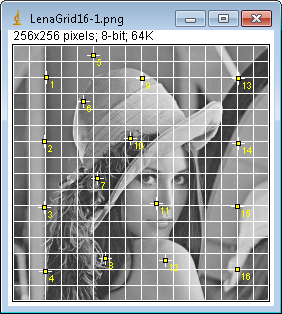 - Töltsünk be két képet. Ha a deformáció hatását szeretnénk tesztelni egy pontpárosítás hatására, akkor használhatjuk ugyanazt a két képet. Esetünkben ez a LenaGrid16.png kép.